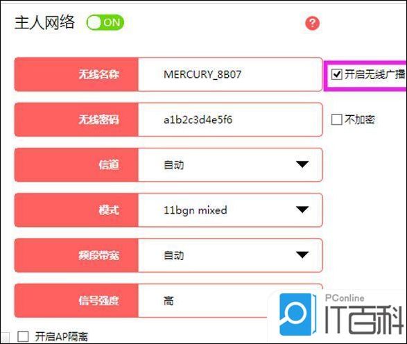 在路由器的"无线设置"选项下,找到"开启无线广播"或者"开启SSID广播"选项,如果这个选项关闭了,说明路由器设置隐藏了wifi信号;