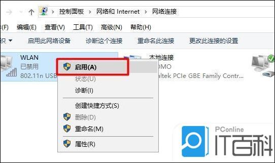所以,请检查下你的Win8笔记本电脑,无线网卡是否被禁用了?如果已经被禁用了,请鼠标右击"W",然后选择:启用,如下图所示。