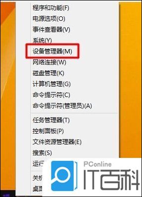 (1)、鼠标右击Win8的"开始"按钮图标——>选择:设备管理器;