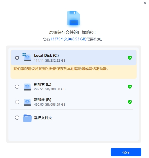 如果Win10系统文件损坏并且已经丢失或因某些原因而被误删除,我们可以通过专业的文件恢复软件将系统文件找回。如,易我数据恢复(EaseUS Data Recovery Wizard),它是一款界面简洁、操作简单的数据恢复软件,支持多种设备类型和数据类型,包括照片、视频、办公文件、音频等。