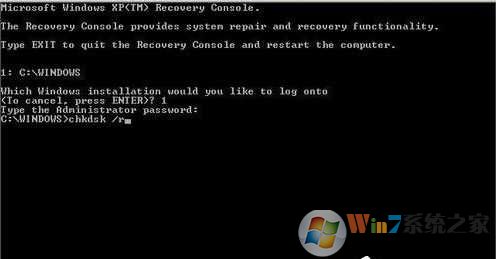 4.此时出现提示符C:\ ,这时候输入" chkdsk -r "就能自动检测修复了。