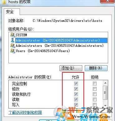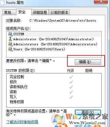 7、点击编辑,选中当前登录帐户,将权限设置为全部允许;