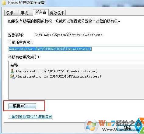 8、上述操作全部完成后,我们点确定--确定,退出编辑。该帐户就获取了windows7系统的TrustedInstaller权限了,实际上是把该文件或文件夹的所有者改成了当前登录账户,所以当前账户就有了更改文件的权限。