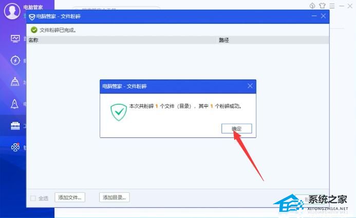 3、电脑管家弹出粉碎信息,点击确定完成此次粉碎。