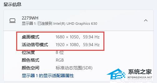 3. 如果你的分辨率和显示器不匹配,就会看到桌面模式和活动信号模式不一样。