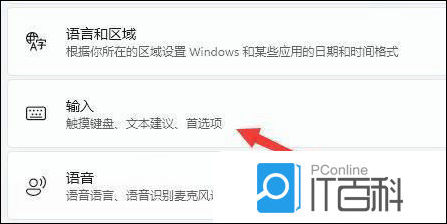 3、接着打开右边的"输入"设置。