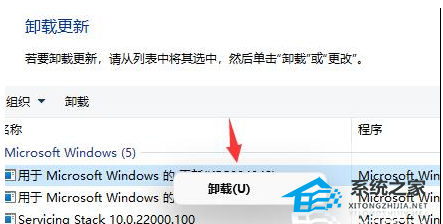 4、在相关设置下方选择“卸载更新”,右键选中KB500430更新,将它“卸载”就可以了。