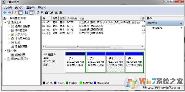 1. 首先在Win7系统中准备一个空的分区来安装ubuntu。在win7中打开磁盘管理。如下图所示: