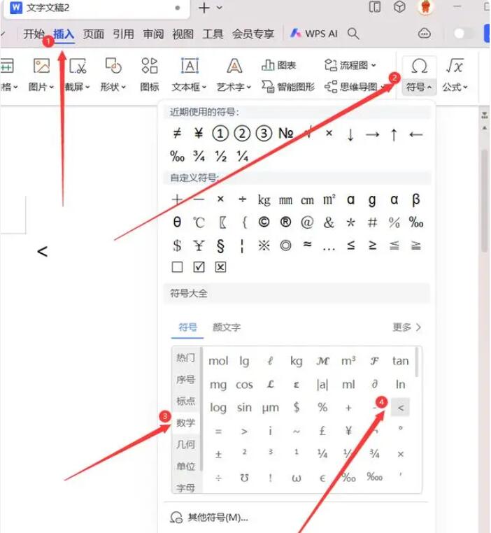 2、在Microsoft Word等软件中,也可以使用特殊字符插入功能来插入小于号。可以点击菜单栏中的“插入”选项,然后选择“符号”或“特殊字符”打开插入工具,在工具中可以找到小于号并插入到需要的位置。