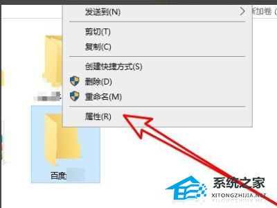 1、右键点击要打开的文件夹,在弹出菜单中选择“属性”的菜单项。