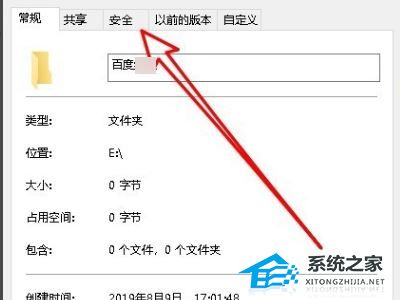 2、接下来在打开的文件夹属性窗口中点击“安全”的选项卡。