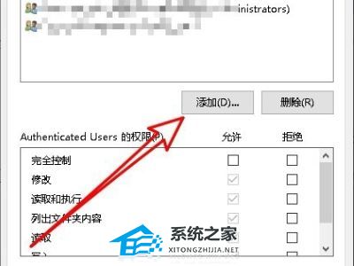 4、然后在打开的编辑权限页面中点击“添加”按钮。
