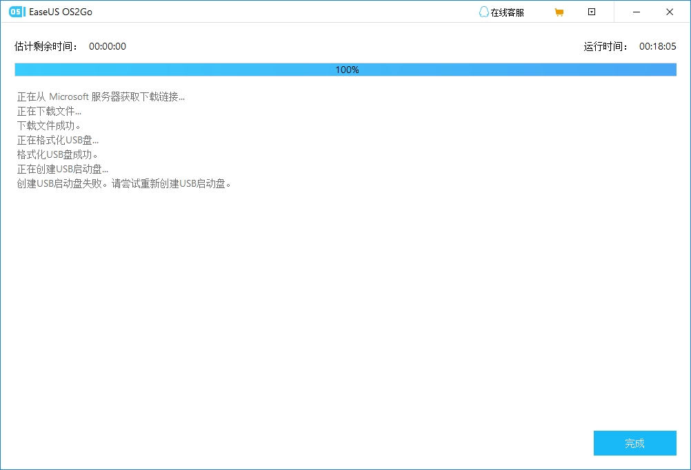 步骤 3.然后EaseUS OS2Go将开始创建Windows启动盘。这通常需要等待一段时间,具体取决于您的操作系统和网络状况。