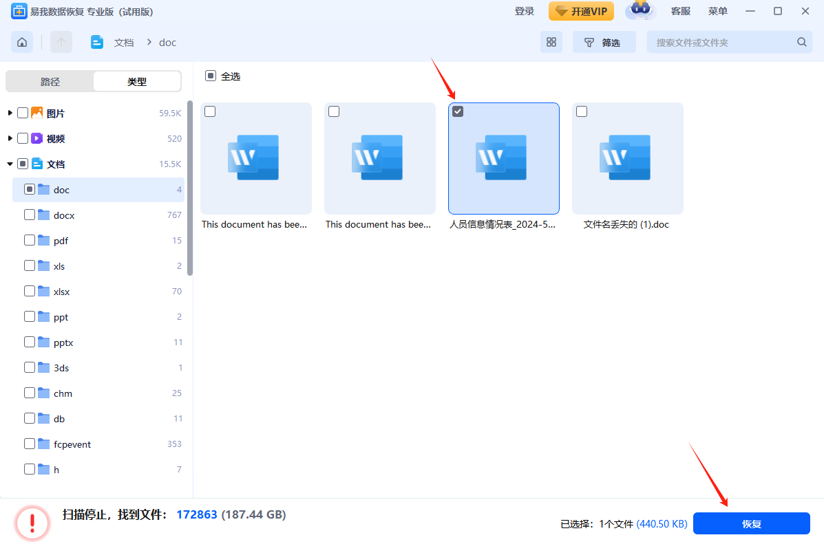 您可以根据这些文件的大小、格式、类型等特征来筛选要恢复的文件夹。