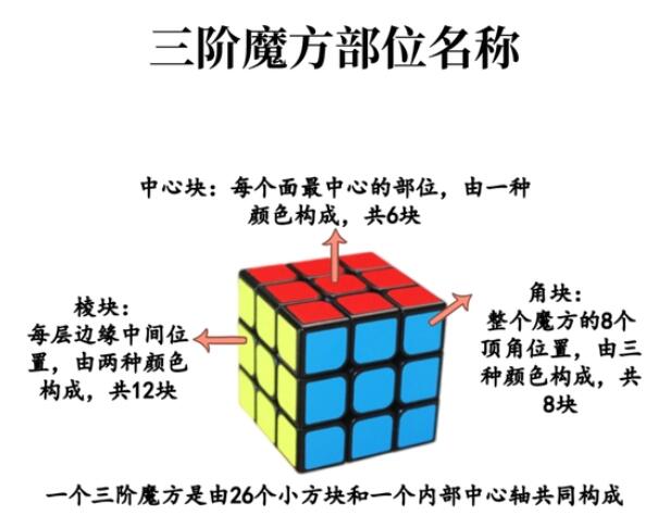 1、魔方由27个小块组成,其中有6个中心块、12个边块和8个角块。