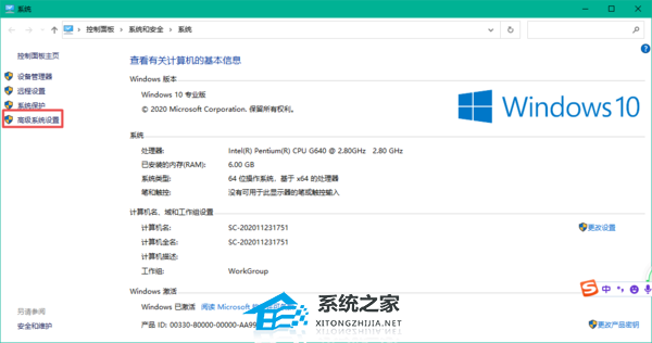 2、在接着出现的页面里找到并点击“高级系统设置”。