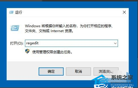 2. 这时就会打开Windows10的运行窗口,在窗口中输入命令regedit,然后点击确定按钮。