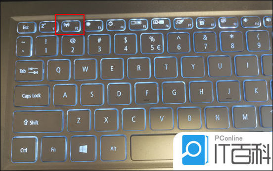 1. 笔记本电脑在键盘上面有一个WiFi开关,这个按键通常在第一排,按键上面有一个WiFi图标,很容易就能找到的,如下图所示;