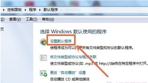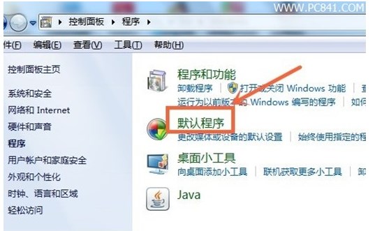 3、、进入程序设置后,我们再点击进入"默认程序"设置,如下Windows7图所示: