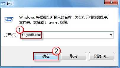 1:按组合键"Win+R"调出运行命令框,在"打开"栏中键入regedit.exe,回车,打开注册表编辑器。(