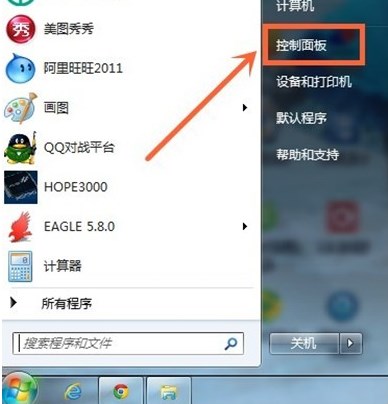 1、首先从Win7开始菜单中,找到"控制面板",并点击进入,如下图所示: