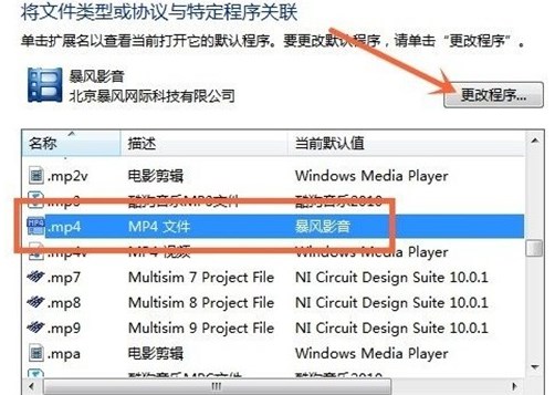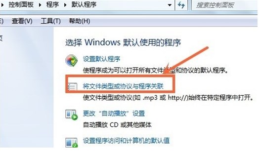 6、另外我们还可以"默认程序"设置,选择第二项的"将文件类型或协议与程序关联",里面可以更改MP3、视频文件的打开方式,如下图所示: