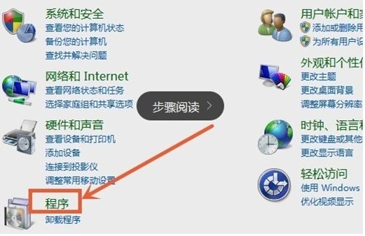 2、进入控制面板之后,我们再找到"程序"设置,如下图所示:
