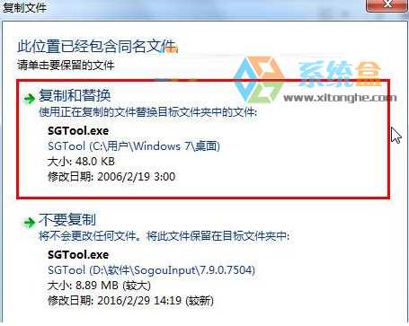 5、然后将创建好的文件复制到搜狗输入法的安装目录,在弹出的复制文件框中选择"复制和替换"即可(如无法替换,可用任务管理器将需要替换的文件的经常关闭后然后继续)系