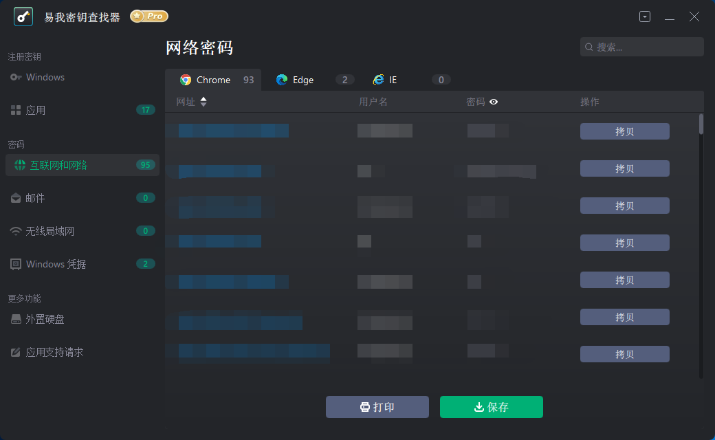 有一些第三方工具可以帮助用户查看电脑激活密钥,这里推荐大家使用易我密钥查找器(EaseUS Key Finder),它是一个易于使用的实用程序,具有简单的界面,它有助于我们找到已注册的 Windows 操作系统以及应用程序的密钥。此外,它还允许查找和管理网络、WLAN 和其他Windows凭据的密码。