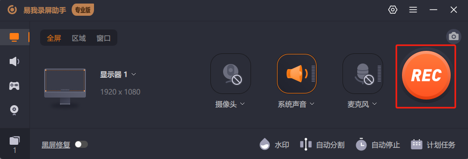 第四步:确认以上设置无误后,点击REC按钮即可开始录屏。