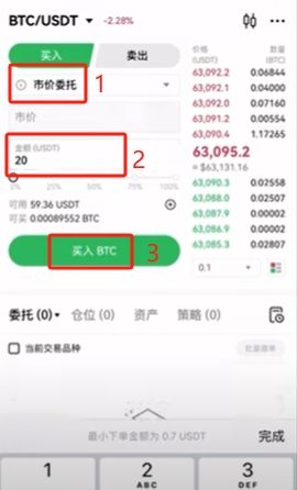 限价委托就是我们来报另一个价,必须得跟这个价格差不多的时候才能够成交。比如现在价格是64500,我们想以64000的价格来进行购买。就输入64000,输入要购买的数量或者是金额,点击【买入BTC】。