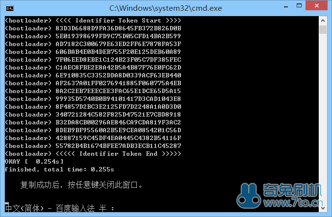 至此HTC G11 (Incredible S)手动解锁Bootloader图文教程完成。还没有学会怎么对HTC G11 (Incredible S)进行解锁的机友可以试试上面奇兔刷机在下给大家分享的这篇HTC G11 (Incredible S)手动解锁Bootloader图文教程。