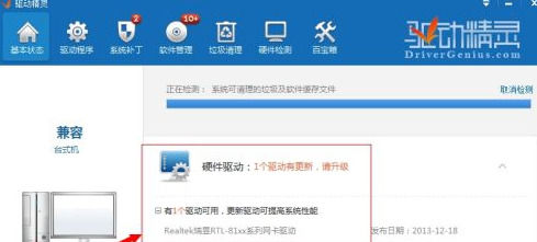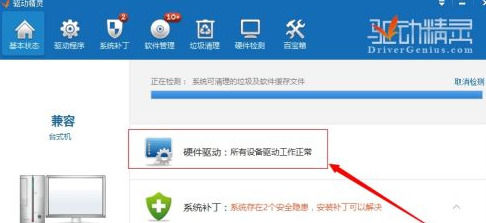 最后返回驱动精灵万能网卡版主界面,重新体检,所有的硬件驱动程序就都是最新的了。