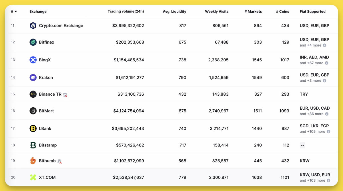 根据CoinMarketCap的数据显示,LBank 目前在全球中心化交易所(CEX)中排名约第17 名,交易深度与流动性表现中上,整体稳定度不错,可归类为「一线边」的交易所。