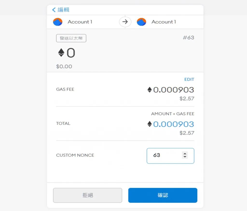 填上前面纪录的 Nonce 数字,并点选确认,即可取消前面的交易