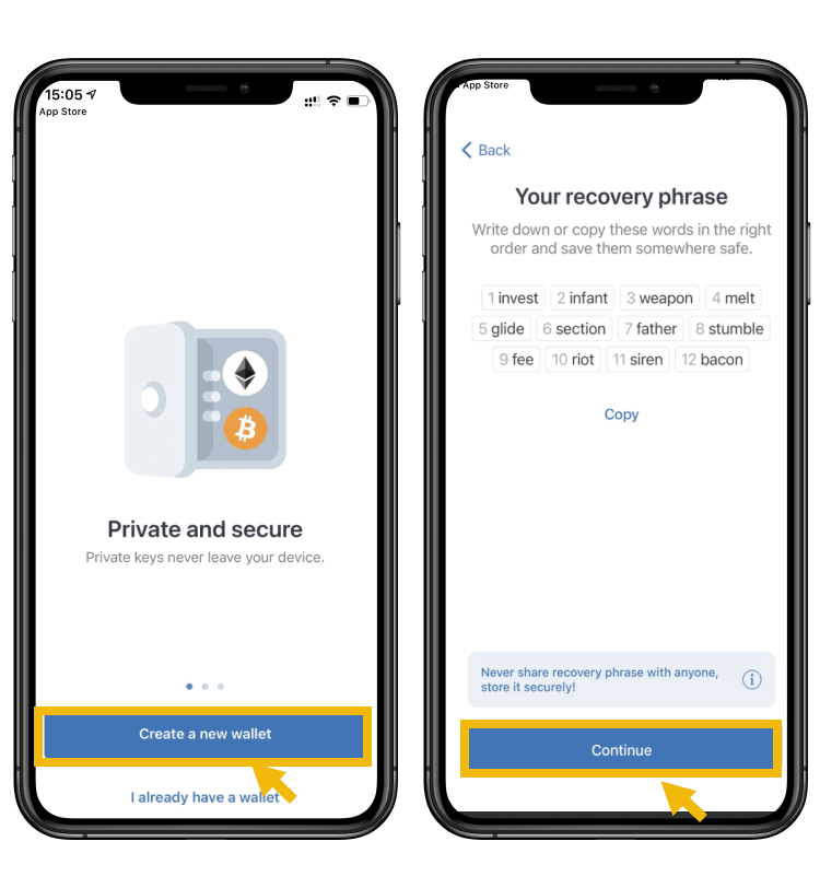 1. 点击【创建新钱包】,备份12个词的助记词。请妥善保管您的私钥和助记词,切勿泄露给任何人。一旦丢失,您将无法访问您的钱包。