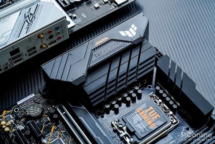 B660芯片组则是被马甲覆盖,马甲上带有TUF GAMING的科技风格标识。