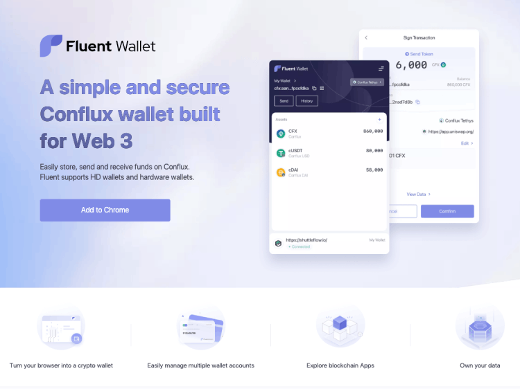 专为Conflux 网络打造的Web3钱包。它可让用户管理资产并与DApp 互动。