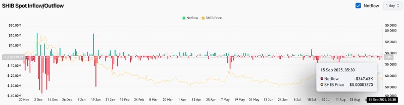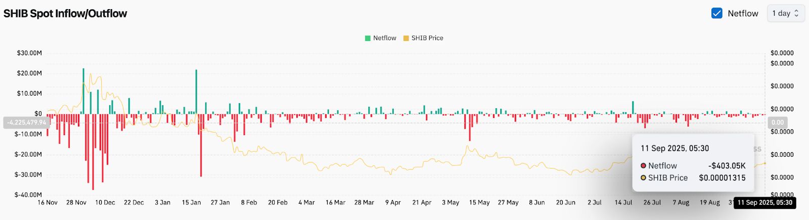 交易所数据显示交易活动较为温和。9 月 11 日,Coinglass 录得 40.3 万美元净流出,表明资金积累较少,但远不及此前上涨期间的强劲流入。