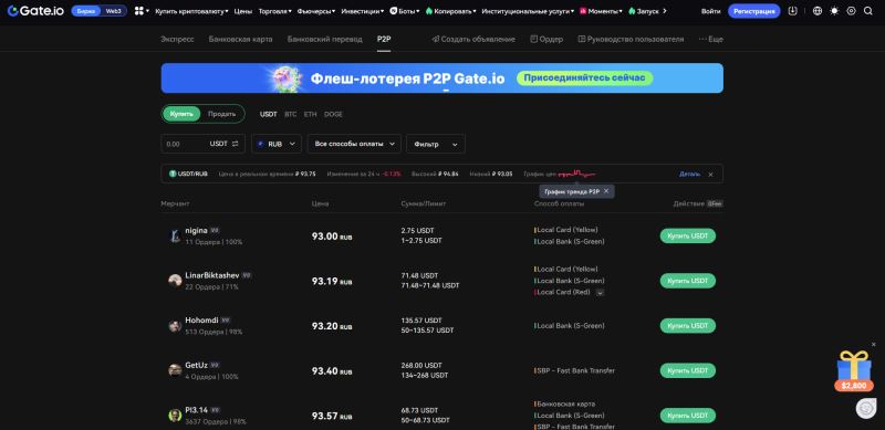 Gate P2P是具有点对点交易点对点市场的最佳交易所之一。支持加密货币BTC、USDT、ETH、DOGE。制造商收取 0.2% 的佣金。