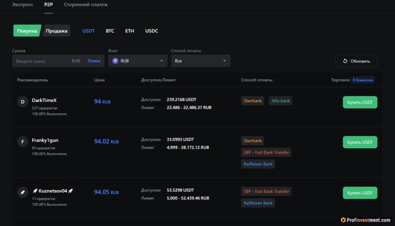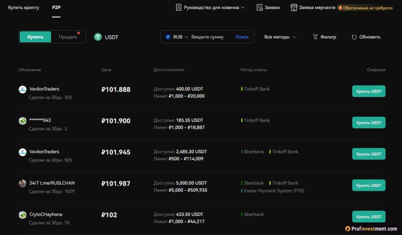 Profinvestment 的专家团队研究了领先的平台,并确定了最好的 p2p 交易所及其主要特征。以下是 2025 年 20 多个热门 P2P 平台的信息。