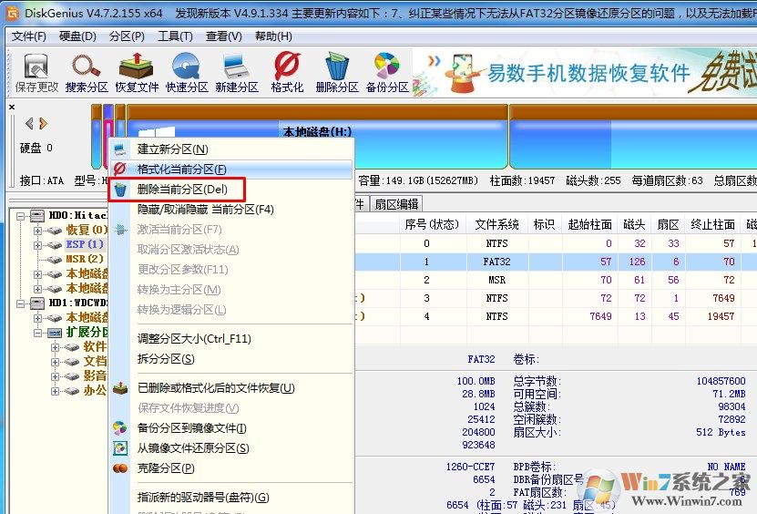 2、将这个分区删除然后新建成正常分区即可,这样我们就可以多了一个10个G左右的分区了