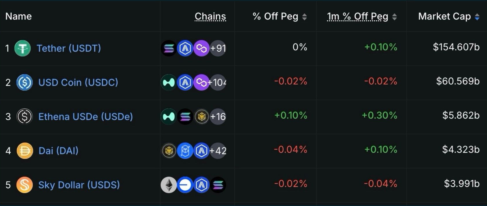 稳定币市值排行表(Source:DefiLlama、资料日期:2025/6/6)