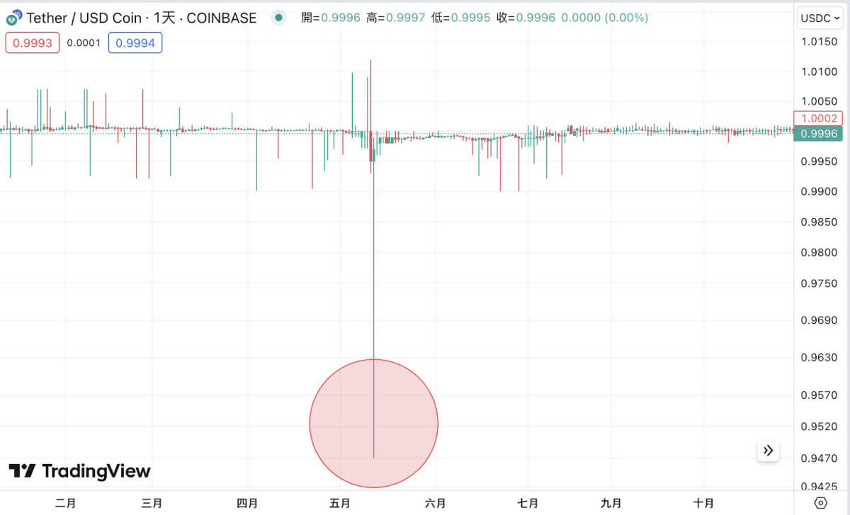 USDT 泰达币风险3:市价短时间脱离1 美元范围