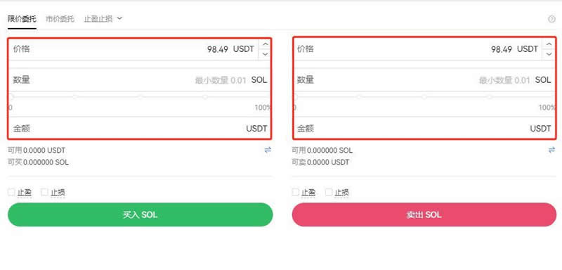10、输入购买数量,点击买入SOL币即可,若是卖出,输入卖出数量,点击卖出即可(注意SOL币最小交易量为0.01SOL)