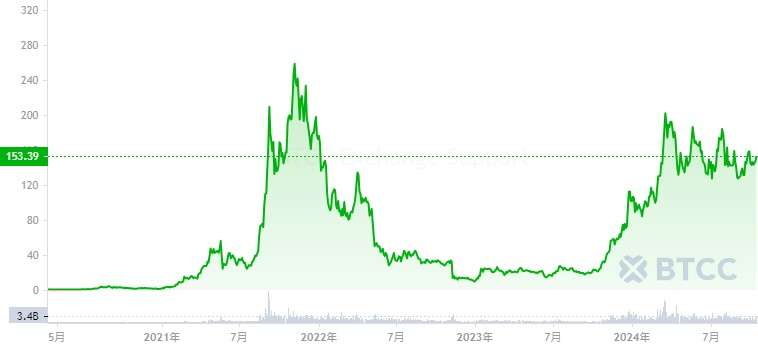 SOL 币价格的最早记录为2020 年,以下为其推出后的历史价格表现: