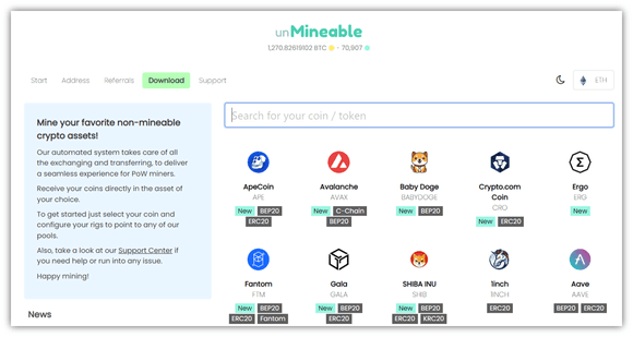 基本上就是要透过挖矿程式来进行,而今天要跟你分享的挖矿程式,主要是一个来自于叫做unmineable的平台,而在这个平台上,除了可以进行SOL币的挖矿以外,它也可以进行其他不同加密货币的挖矿活动,像是比特币、以太币、门罗币…等。