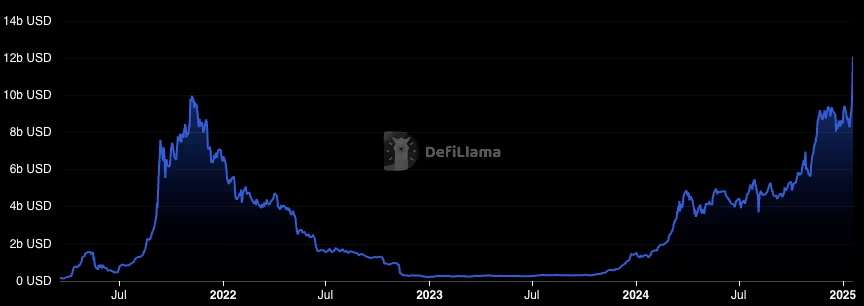 其次,川普家族在川普1 月20 日就职演讲前使用Solana 作为原生区块链来推出了官方迷因币$TRUMP和$MELANIA,进一步提高人们对Solana 的热情,推高SOL 价格且交易量大增,也使得锁定在Solana 链上的总锁仓价值(TVL)突破100 亿美元,为加密货币交易所FTX 倒闭以来首见。