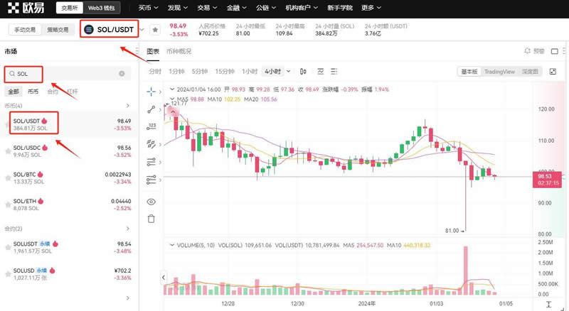 1、交易所购买:说明上线交易所目前SOL币共上线了59家交易所,常见的有欧易,币安,火币等交易所,通过这些交易所即可买卖交易SOL币。