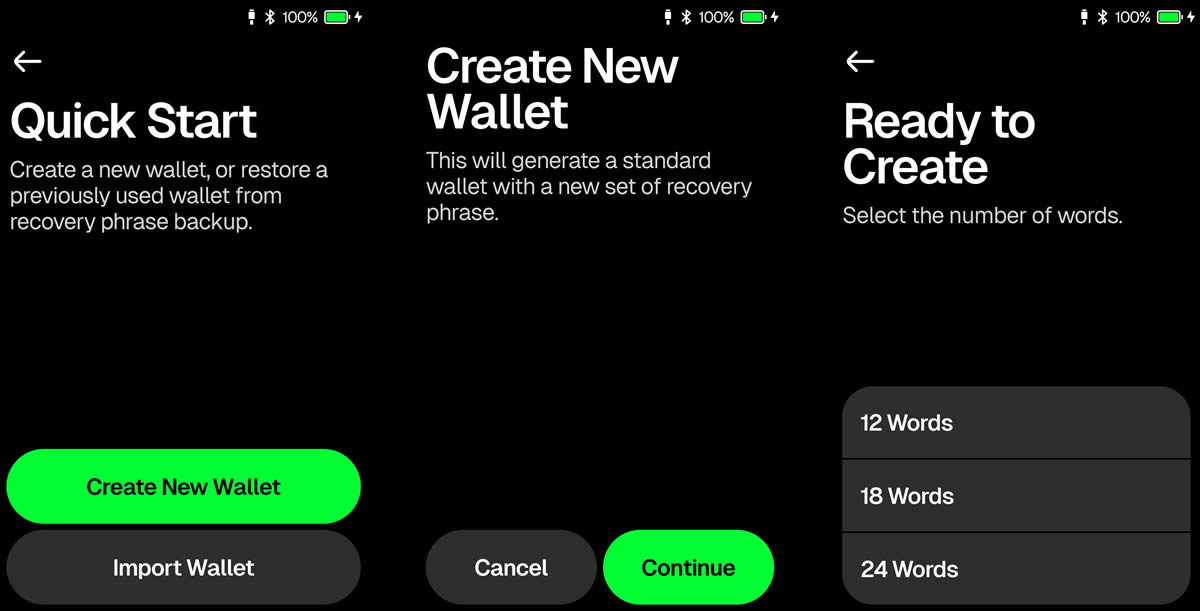 选择「创建新钱包 (Create New Wallet)」 并按「继续 (Continue)」 开始初始化新钱包。